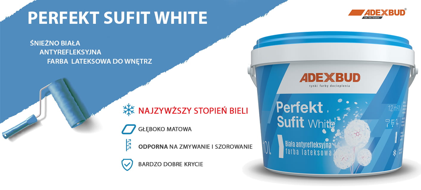 Perfekt Sufit White biała antyrefleksyjna farba do sufitów 3l/5l/10l Adexbud